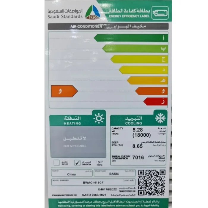| الصنف | مكيف بيسك شباك 18000 وحدة – بارد |
