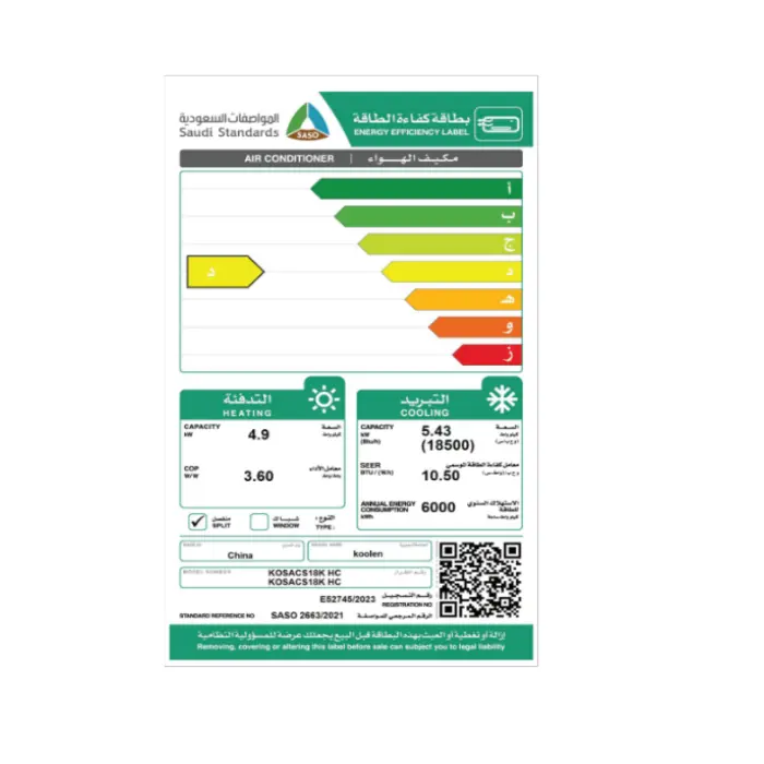 مكيف اسبليت كولن 18500 وحدة واي فاي حار – بارد KOSACS18K HC