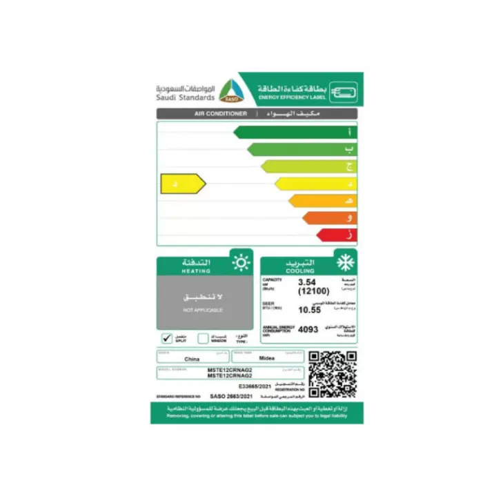 • تصنيف كفاءة الطاقة: متوسط / D لتوفير استهلاك الكهرباء.