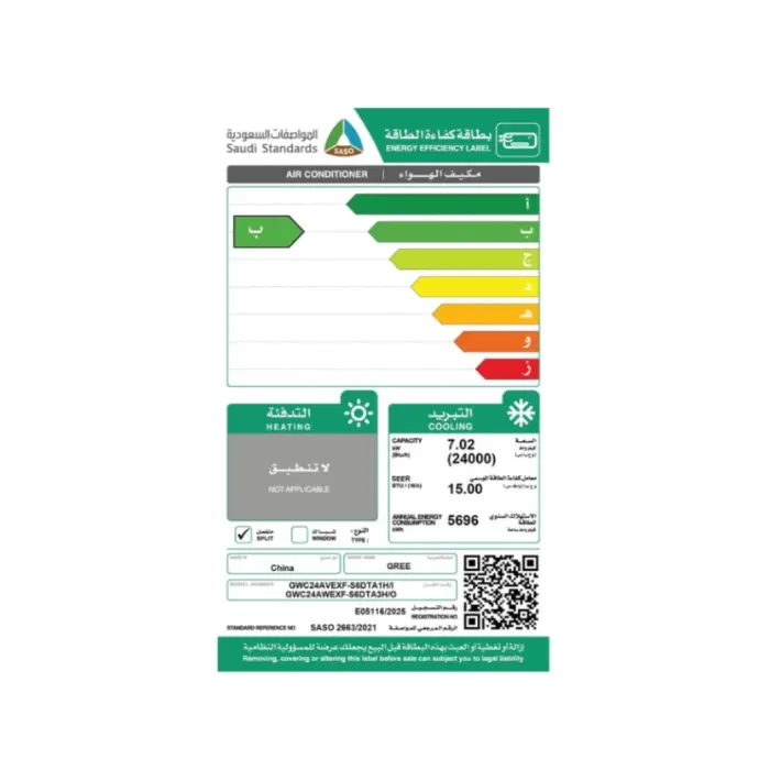 | الصنف | مكيف جرى اى بلس سبليت 24 ألف وحدة بارد – انفيرتر – أبيض |