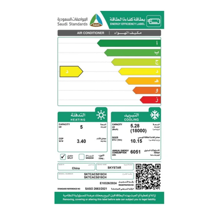 | الصنف | مكيف سكاي ستار سبليت 18000 وحدة wi-fi – حار/بارد |