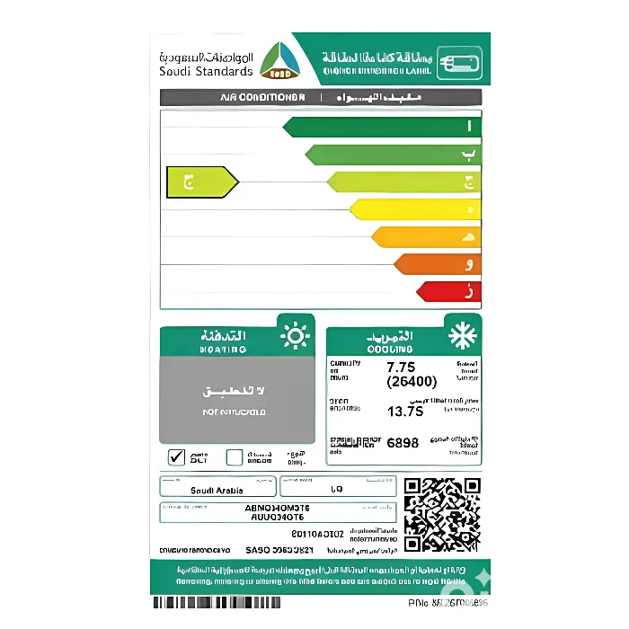 - القدرة الفعلية للتبريد: 26,400 وحدة