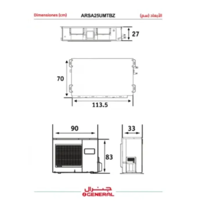 - أبعاد الوحدة الخارجية: 83 × 90 × 33 سم