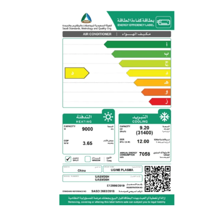 | الصنف | مكيف يوجين سبليت بلازما 31400 وحدة حار/بارد |