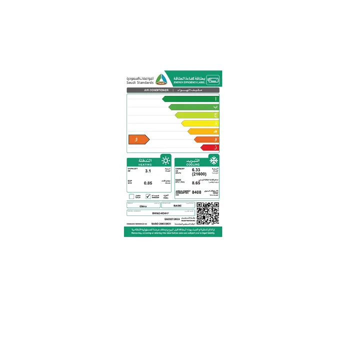 - قدرة تبريد فعلية تصل إلى 21600 وحدة لأداء قوي وسريع.